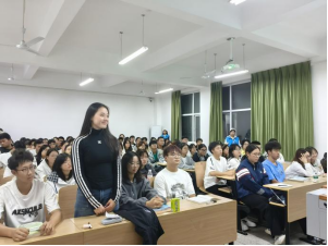 宣讲过程中,身着统一蓝色志愿者服装、佩戴白色帽子的“追光者”队员们精神饱满。他们巧妙运用“小故事+大精神”的叙事方式,以充沛的情感生动讲述了邓稼先、钱学森等老一辈科学家放弃国外优厚待遇、隐姓埋名扎根戈壁,最终成就“两弹一星”惊世伟业的感人事迹,深刻阐释了“热爱祖国、无私奉献,自力更生、艰苦奋斗,大力协同、勇于登攀”的“两弹一星”精神内核。教室内座无虚席,学子们神情专注,聆听中不时流露出敬佩与思索。