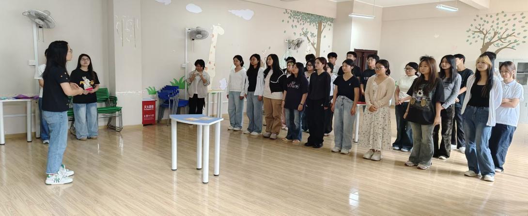 10月11日,商学院专为25级新生定制的心理团辅活动在5-419教室精彩上演。在心理健康中心袁斌老师的指导下,我院李思宇同学与素质拓展队伍干事们的共同筹备,为新生们呈现了一场别开生面的团辅活动。商学院综合办公室主任余芬老师、分团委书记林雪老师、辅导员柳大艳老师亲临现场,与新生亲切互动,现场氛围热烈融洽。