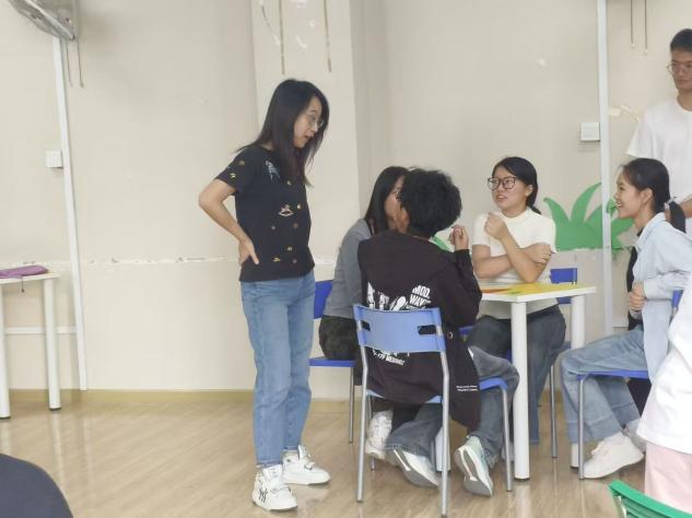 活动在轻松有趣的“报团数脚”热身游戏中拉开序幕。随指令响起,新生们在宽敞明亮的教室内围成圆圈,迅速组队、默契配合。原本略显拘谨的同学,在一次次的互动协作中逐渐放松,欢声笑语不断,初见的陌生感在轻松愉快的氛围中悄然消散。老师们在一旁静静观察,看着这群充满朝气的新生们快速融入,脸上也露出了欣慰的笑容。
